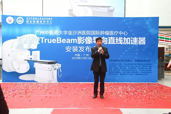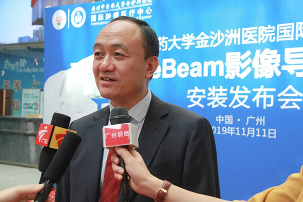 “先进的设备和技术,为肿瘤治疗提供更多的可行性。对于复杂的病例,患者有更多的选择,意味着更高的生存率。金沙洲医院国际肿瘤医疗中心提供从硬件到软件的全方位精准放疗解决方案,并以严格的质量控制技术确保精准放疗的有效实施,为患者健康保驾护航!”我院宋骤执行院长对记者表示,TrueBeam系统的每一次治疗都能够根据患者解剖位置和形状变化来调整治疗方案,为每位患者实现个体化、精准化的治疗。这将使肿瘤中心的工作效率、治疗能力与治疗质量都提升到全新的高度,从真正的意义上开启肿瘤个性化放射治疗的新模式。