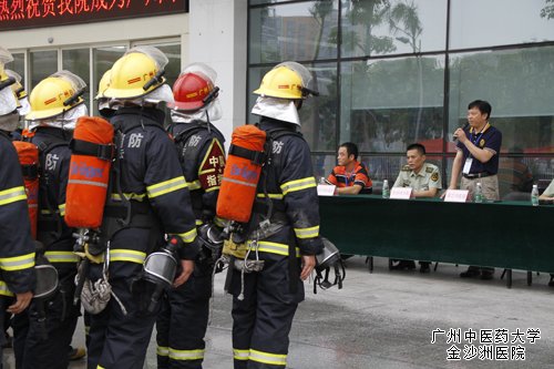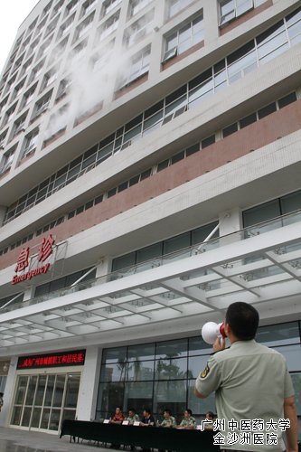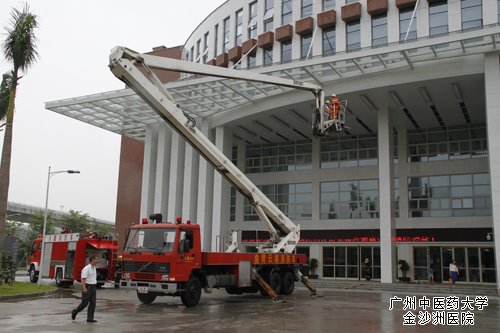 为进一步提高全院职工消防安全意识,强化应对消防安全事件能力,8月11日早上10:00,我院联合白云区公安消防大队举行高层建筑类—人员密集场所灭火救援演练,白云大队部、金沙洲中队、桃园中队、金碧中队、120急救中心、安监、公安、供水供电相关部门及各街镇人员参加了演练和观摩,10多台水罐车、水罐泡沫车、云梯车、抢险救援车、指挥车投入了演练。经过发现火情、报警、云梯高层救援、喷水、泡沫喷洒灭火等救援环节,于11:20完满结束演练。