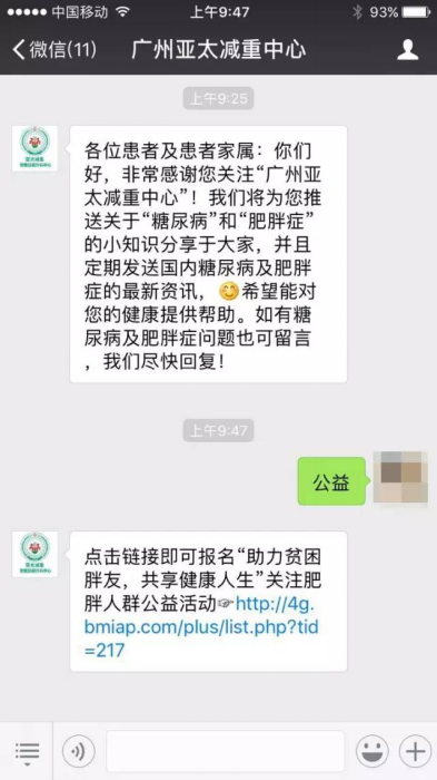 关注“广州亚太减重中心”微信公众订阅号,回复“公益”两字,获取预约报名链接直接报名(或直接点击文末最底端“阅读原文”直接报名):