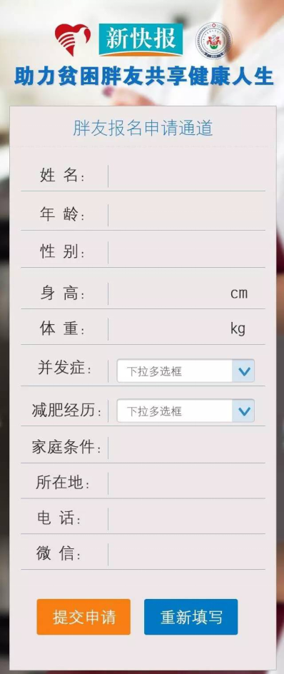 2016年11月14日起,凡符合条件的肥胖症患者,通过电话或微信预约报名,经筛查合格,即可成为此次公益活动的帮扶对象,具体内容如下: