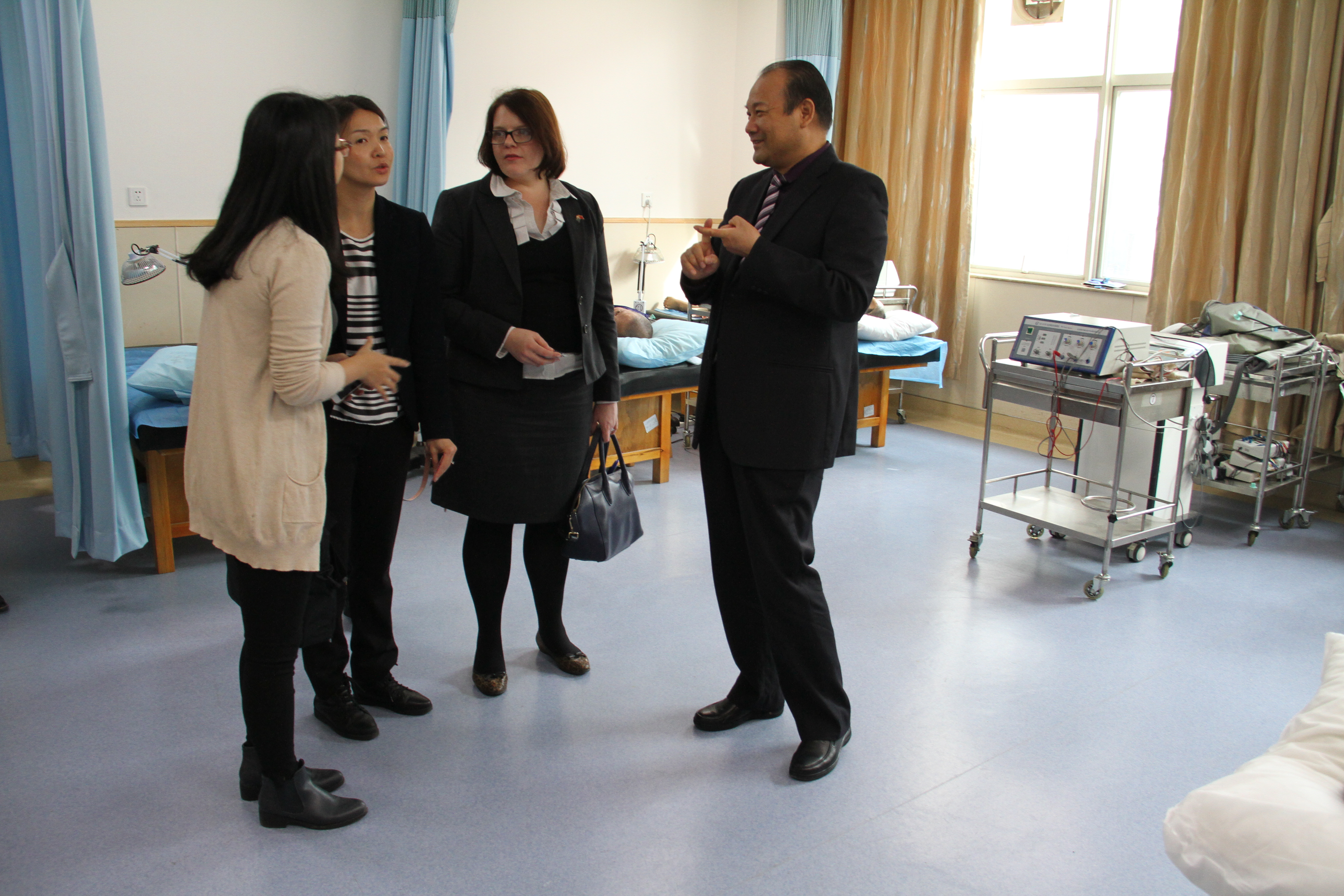 2016年12月6日下午,澳大利亚贸易投资委员会、澳大利亚驻广州总领事馆商务处商务领事Anna Lin (林英华)、领事Alison Bamsey (白爱莉)、商务经理Serena Fong (冯玲)等一行领导来到我院进行参观考察,医院董事长兼院长刘文胜和华投基金(深圳)管理公司董事长李长财进行了陪同接待。