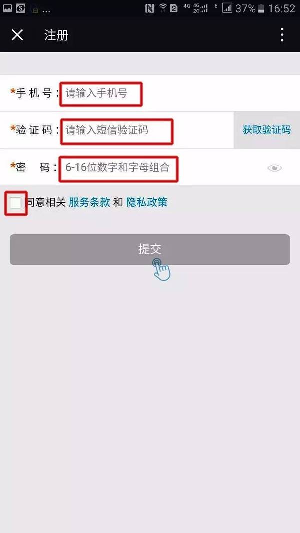 ⑥按提示填写您的资料;
