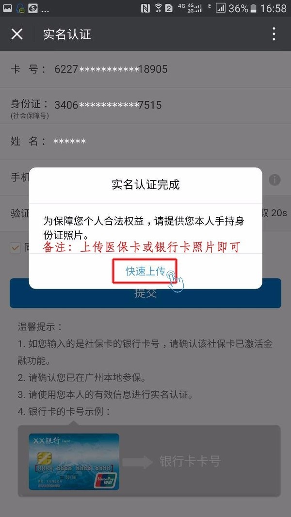 ⑦实名认证完成后,上传您本人手持身份证的照片;