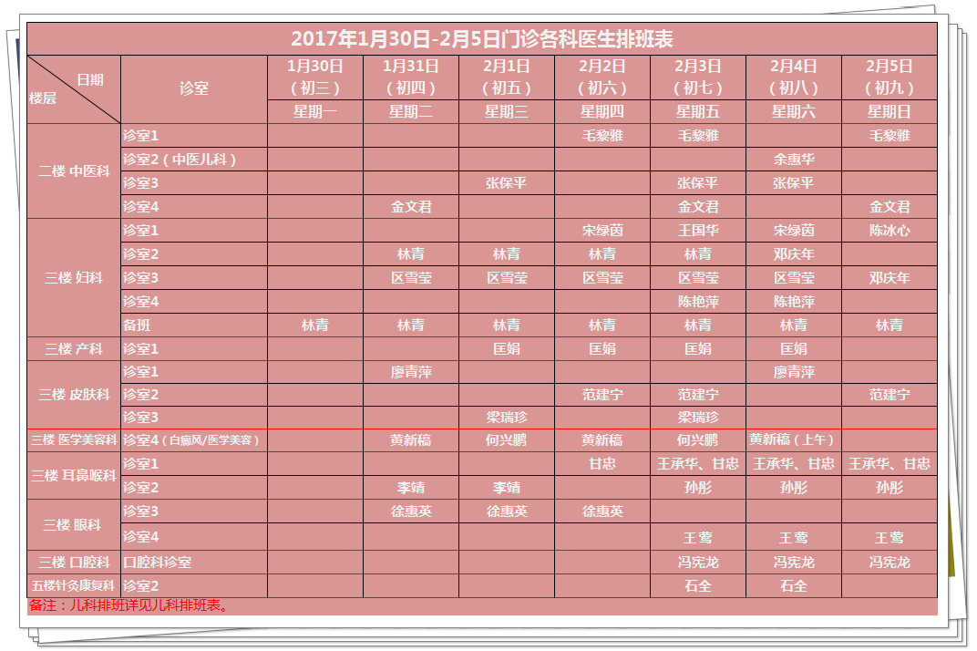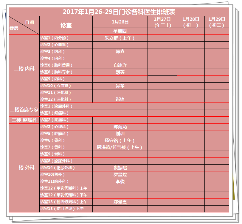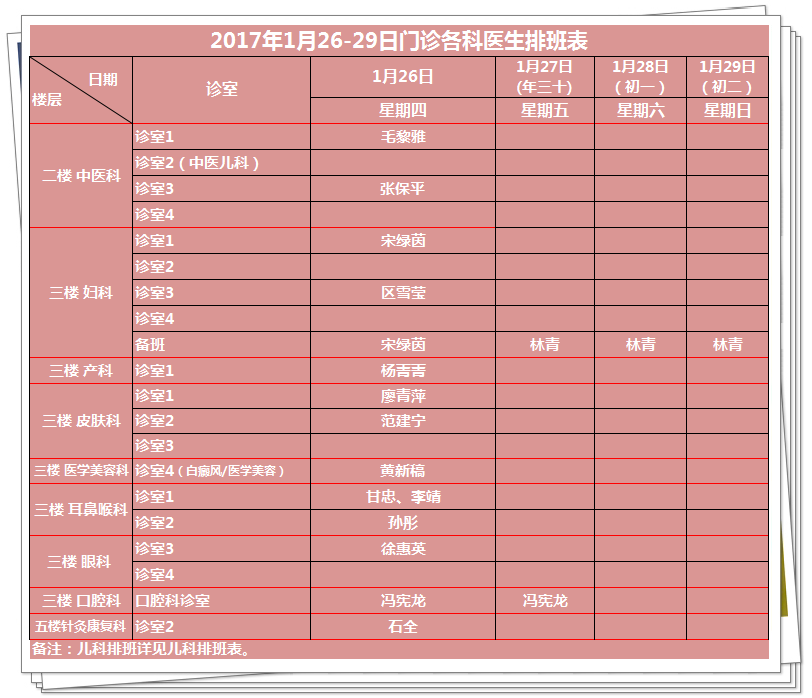 根据国务院的有关规定,结合我院工作实际,我院2017年春节门诊开诊安排如下: