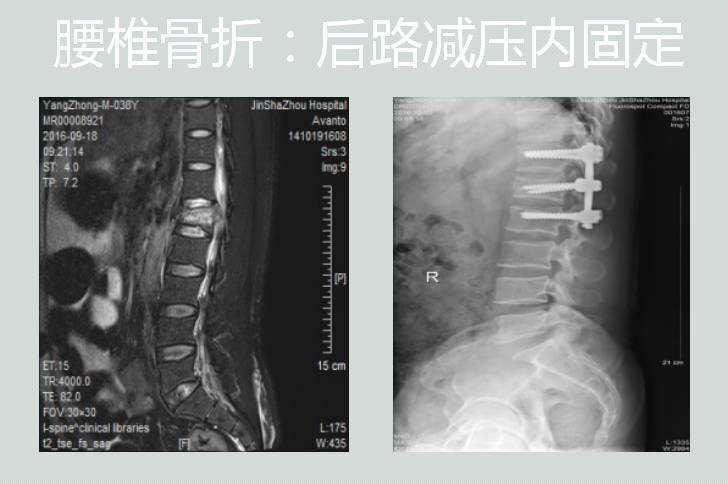 后路椎弓根螺钉内固定复位植骨融合治疗腰椎滑脱症或椎体爆裂性压缩性骨折;