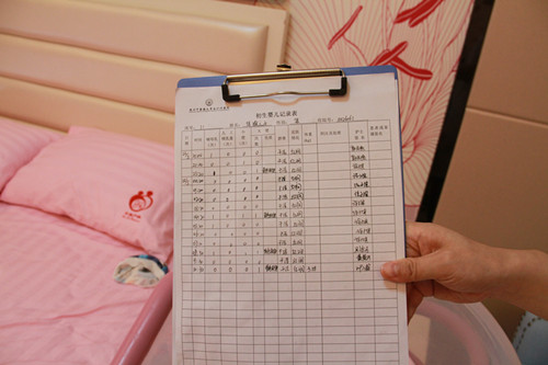在这里,产科医生每天至少查两次房,一来观察乳房情况,进行母乳喂养指导,二来察看子宫复旧情况和恶露颜色等。新生儿医生查房则观察宝宝吃奶情况、黄疸情况和大小便情况。护士们更是每隔一小时就查一次房,记录宝宝吃奶、大小便的时间、次数等。
