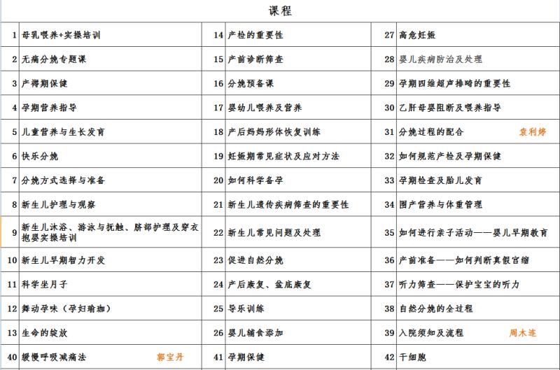 最后的最后,为大家附上“孕妇学校”课程表~(请大家关注“线上孕育知识”微信公众号,具体课程主题按我们公众号及线上孕妇学校的每周通知为准)