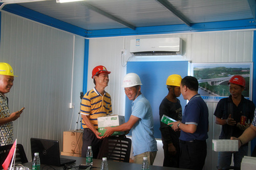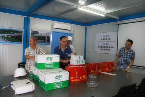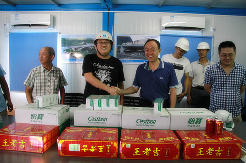 8月1日,我院执行院长宋骤,医院顾问尹峰代表院领导到我院二期施工现场慰问了现场施工的一线工作者,为他们送去了矿泉水、凉茶和藿香正气水,送去炎炎夏日里的清凉。
