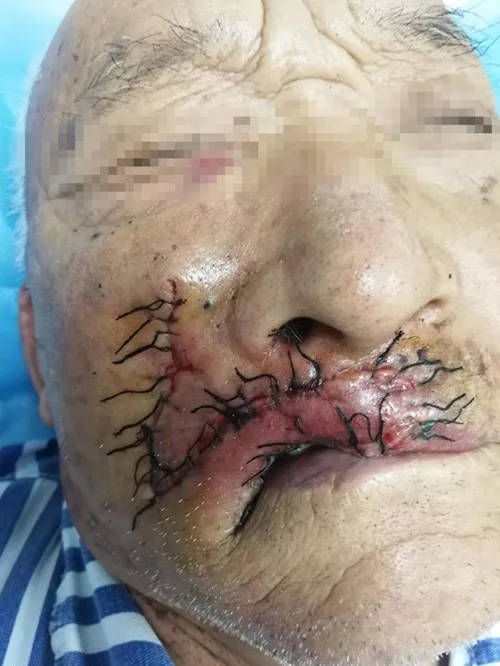 (患者唇癌切除并修复术后)