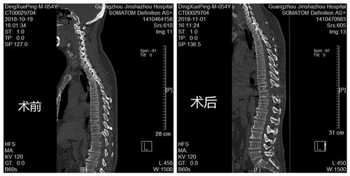 经过详细地询问病史和全面的体格检查,CT提示黄韧带骨化,相应胸椎管狭窄。丁叔就是由于胸椎黄韧带骨化,压迫胸髓引起左下肢痉挛性瘫痪,左下肢僵硬、活动不便、偏瘫步态,严重影响日常生活。