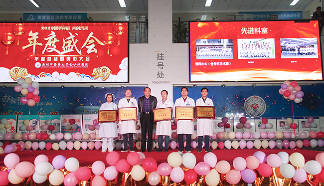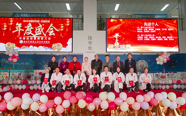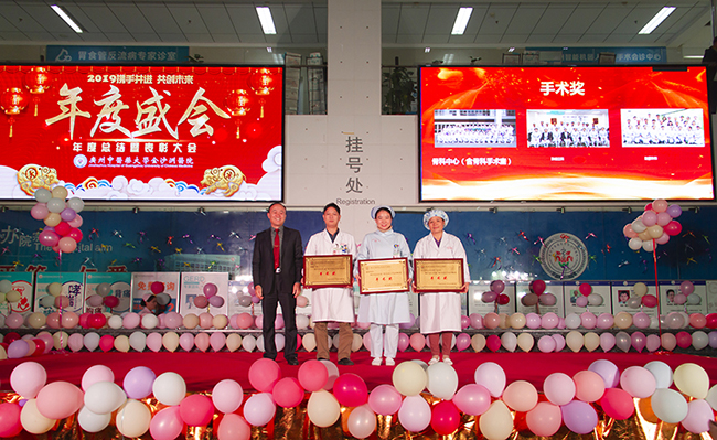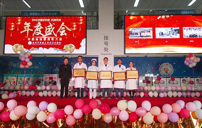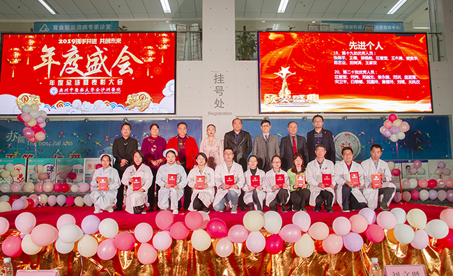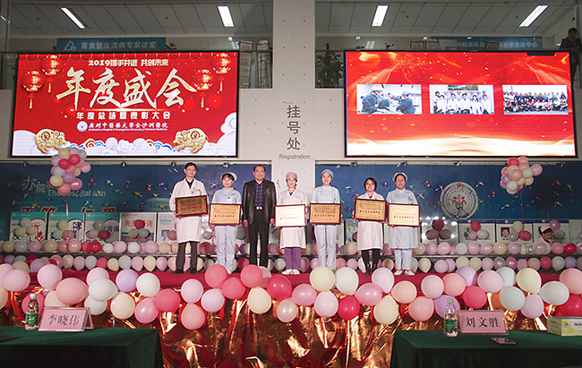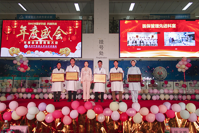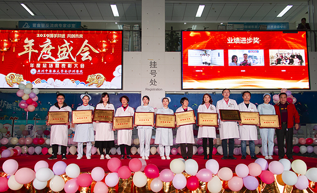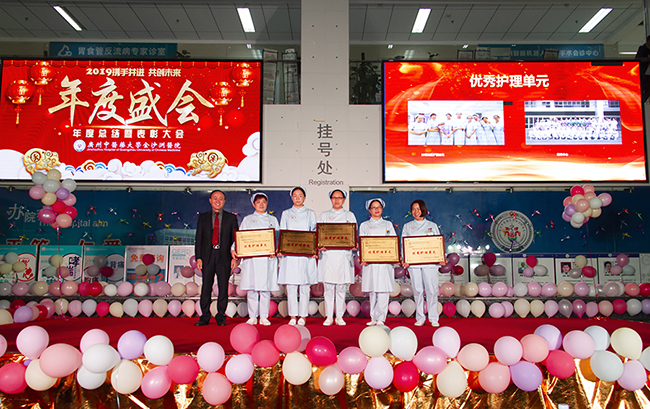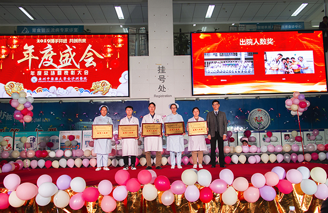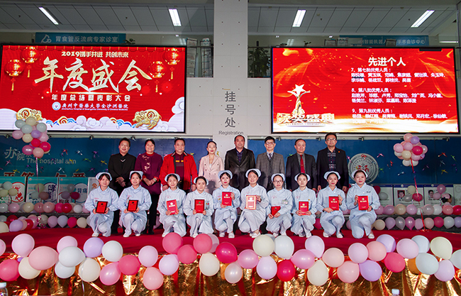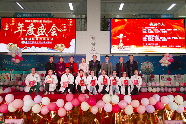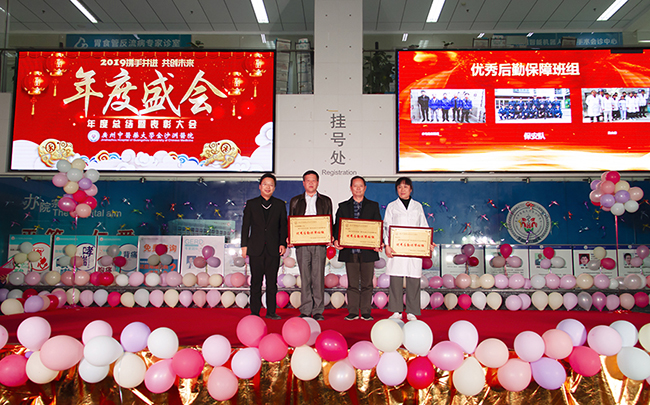 2019年1月23日晚,广州中医药大学金沙洲医院2018年度工作总结暨表彰大会在门诊1楼隆重举行,院领导班子、各职能科室主任、临床科室主任、护士长及全院职工参加了本次会议,会议由ICU护士长胡欢、康复治疗中心何伟鹏主持。