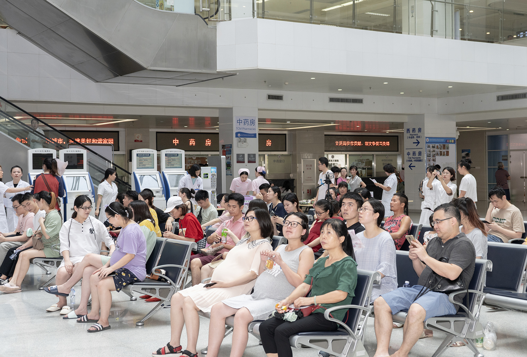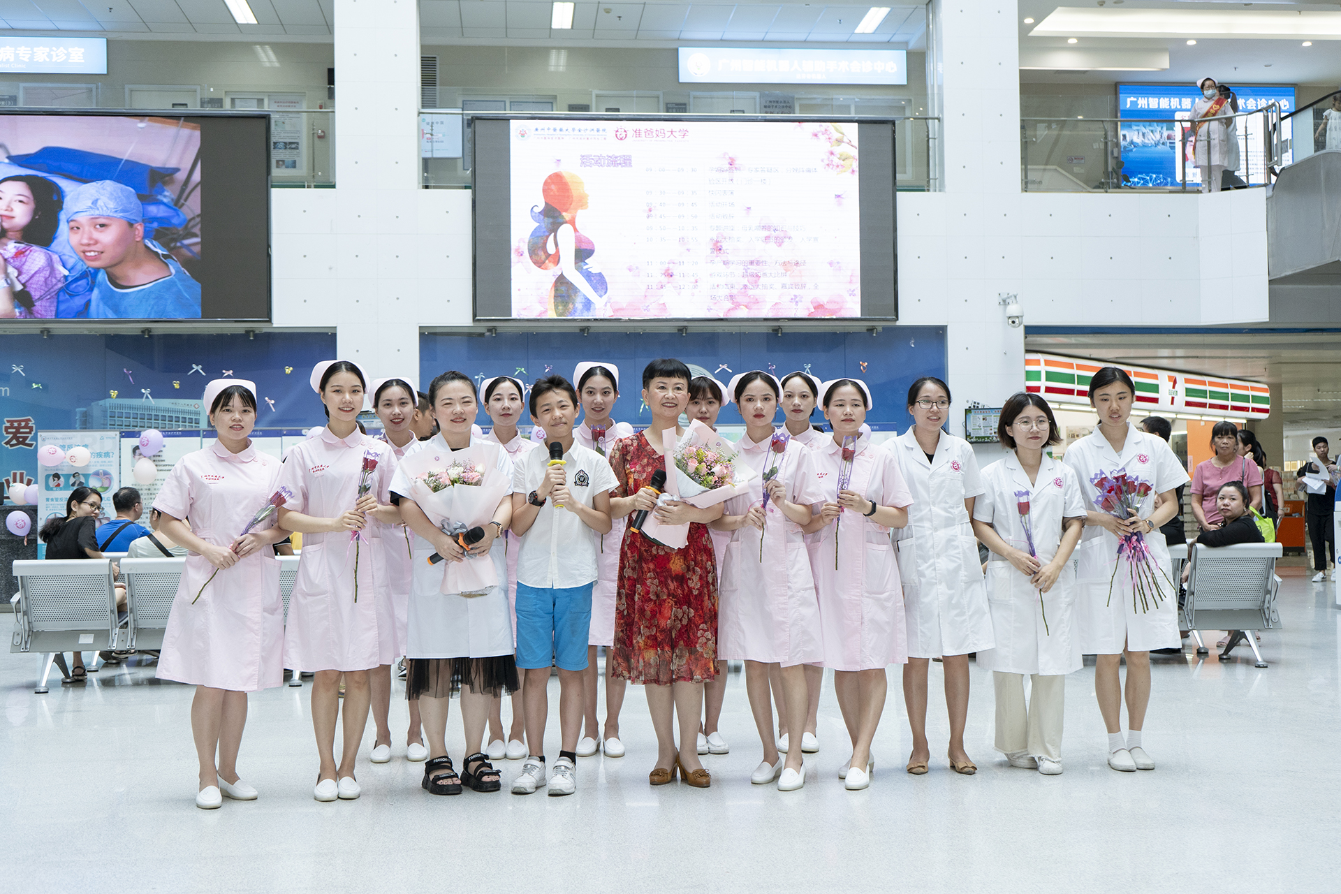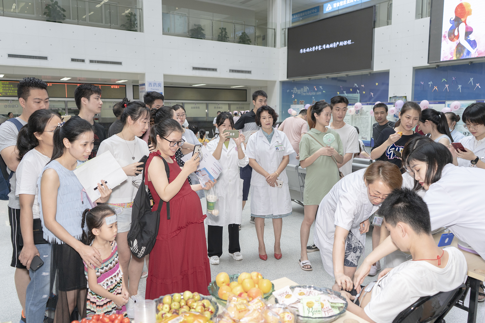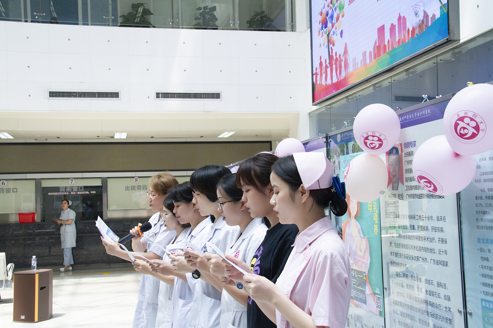 上午九点,经过充分的准备,活动在以《天之大》这首充满对妈妈爱意的歌曲为背景音乐的快闪中拉开序幕。史毅曼主任和杨菁菁医生深情动人的歌声唱得现场的准爸妈和围观群众情不自禁地眼眶湿润,而产科各位护士小姐姐柔美深情的表演,也让现场的观众为之热烈鼓掌。