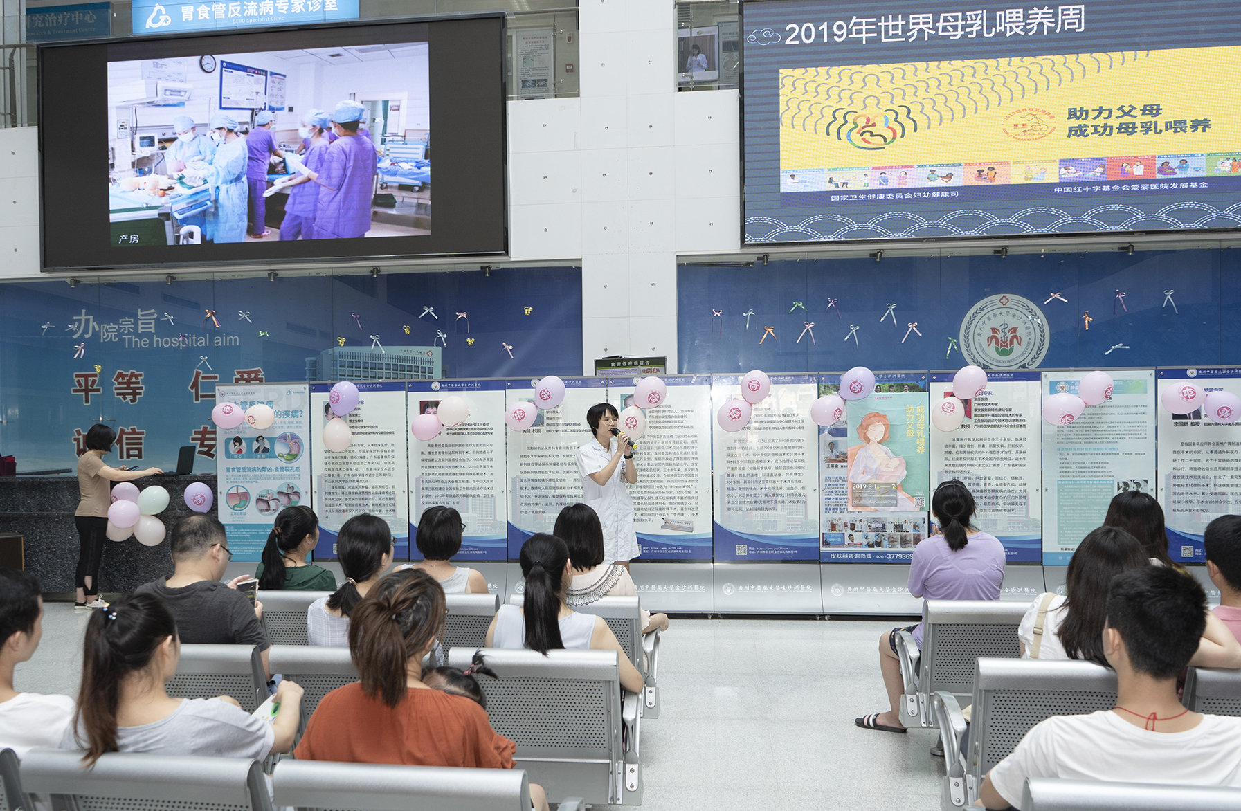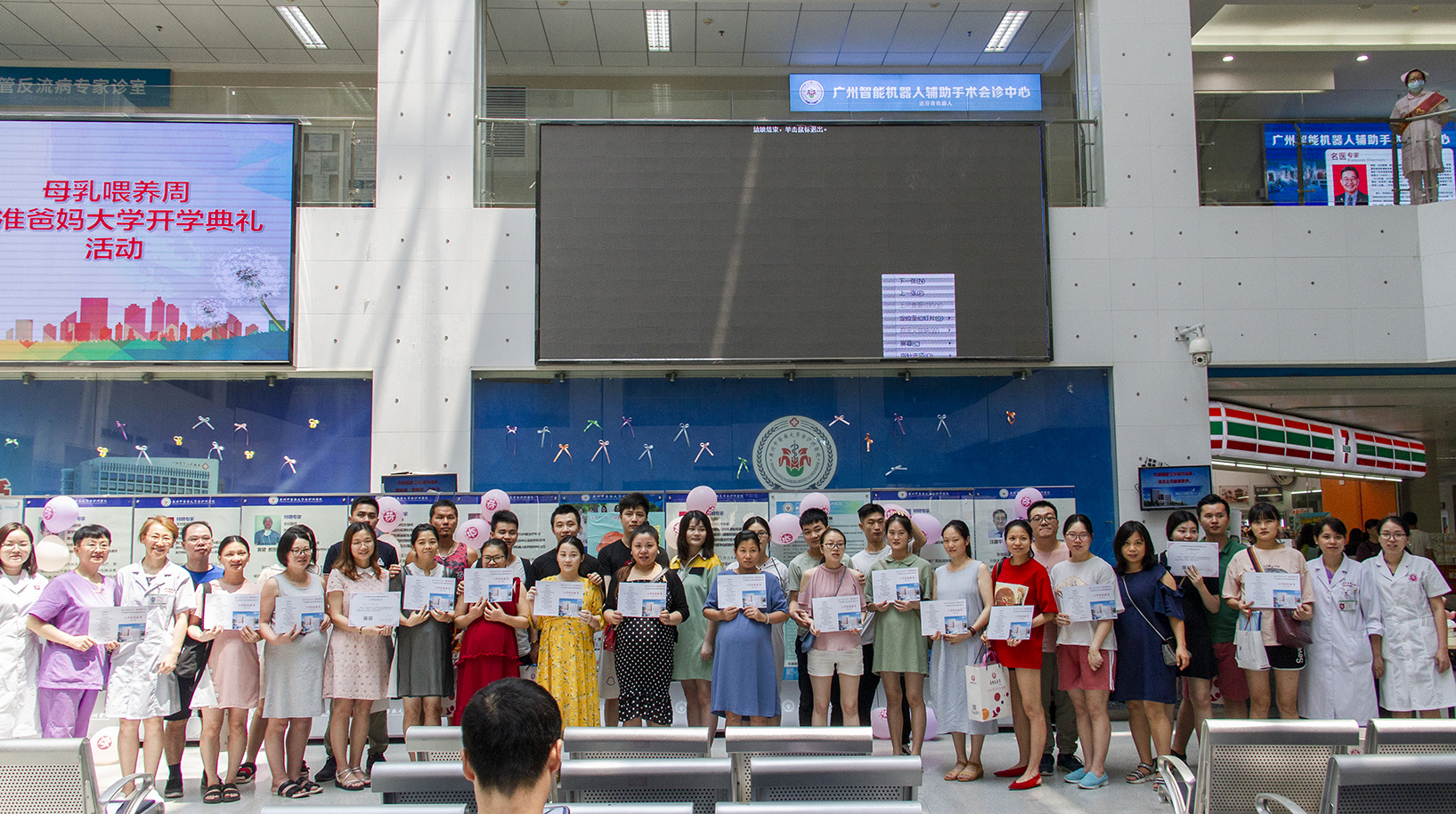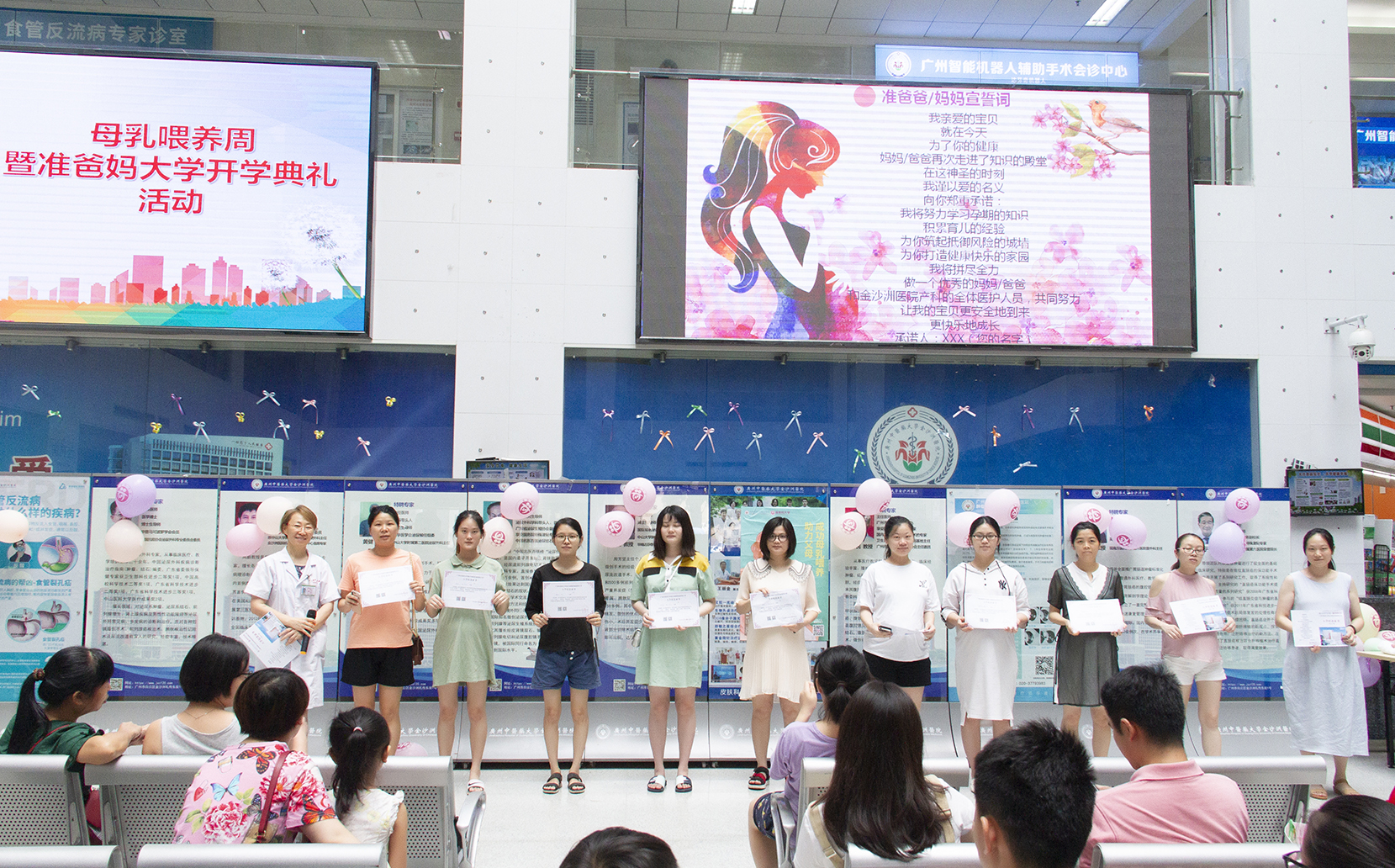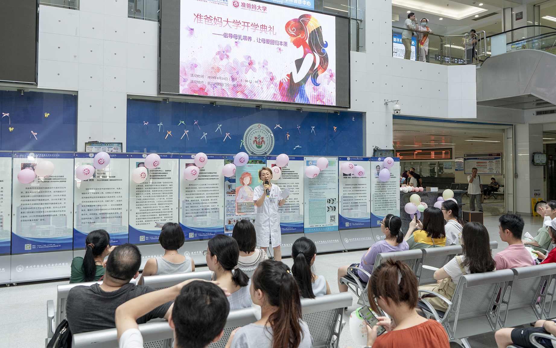 2019年8月10日上午,金沙洲医院母乳喂养周暨准爸妈大学开学典礼在门诊1楼圆满举办。活动当天,44个家庭的准妈妈准爸爸们的到来,给这个不寻常的开学典礼增添了许多的人气和喜悦!