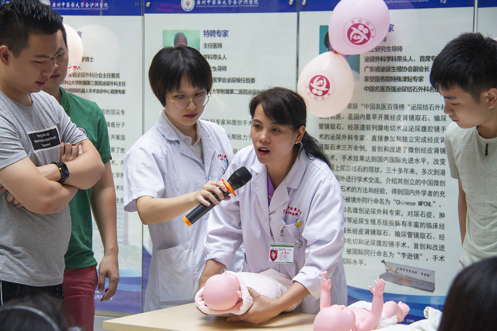 现场还有游戏环节——超级奶爸大比拼。在认真听了产科郭宝丹助产士介绍怎么给宝宝换尿片、穿衣服之后,各位准爸爸们施展浑身解数,用最快的速度给自己的“宝宝”换上尿片穿上衣服。看起来,准爸爸们都能学以致用,很厉害呀!