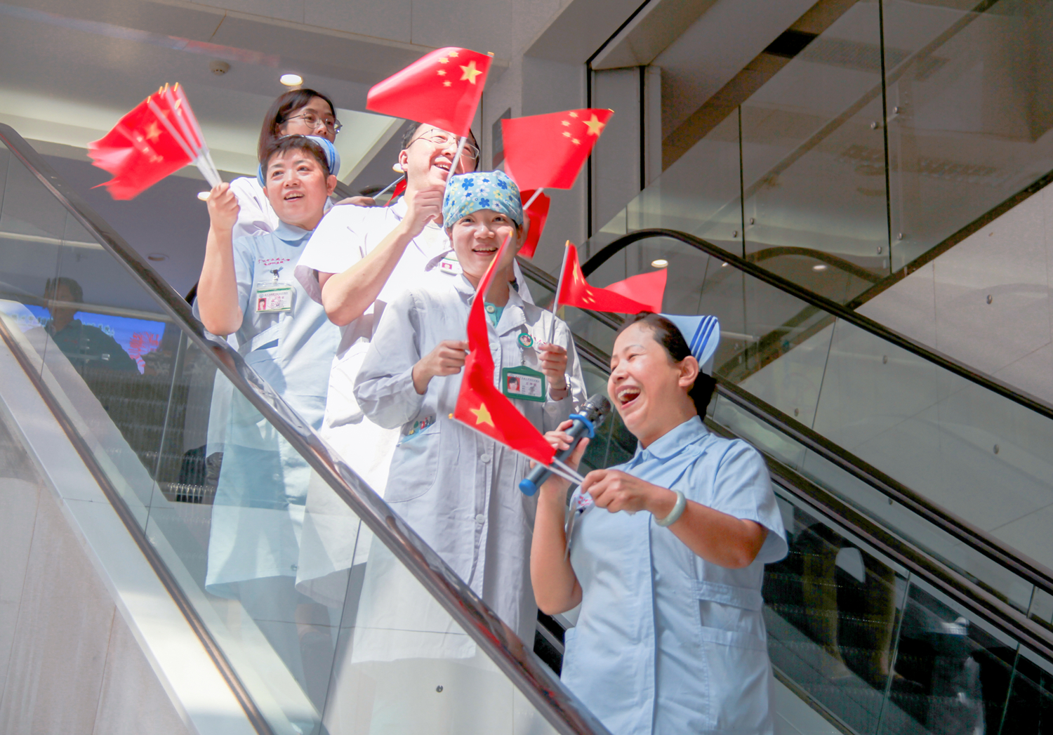 大家用这样激情澎湃的方式表达全院职工团结一致、拼搏奋进的决心,抒发对伟大祖国的无比崇敬,共贺新中国成立70周年。