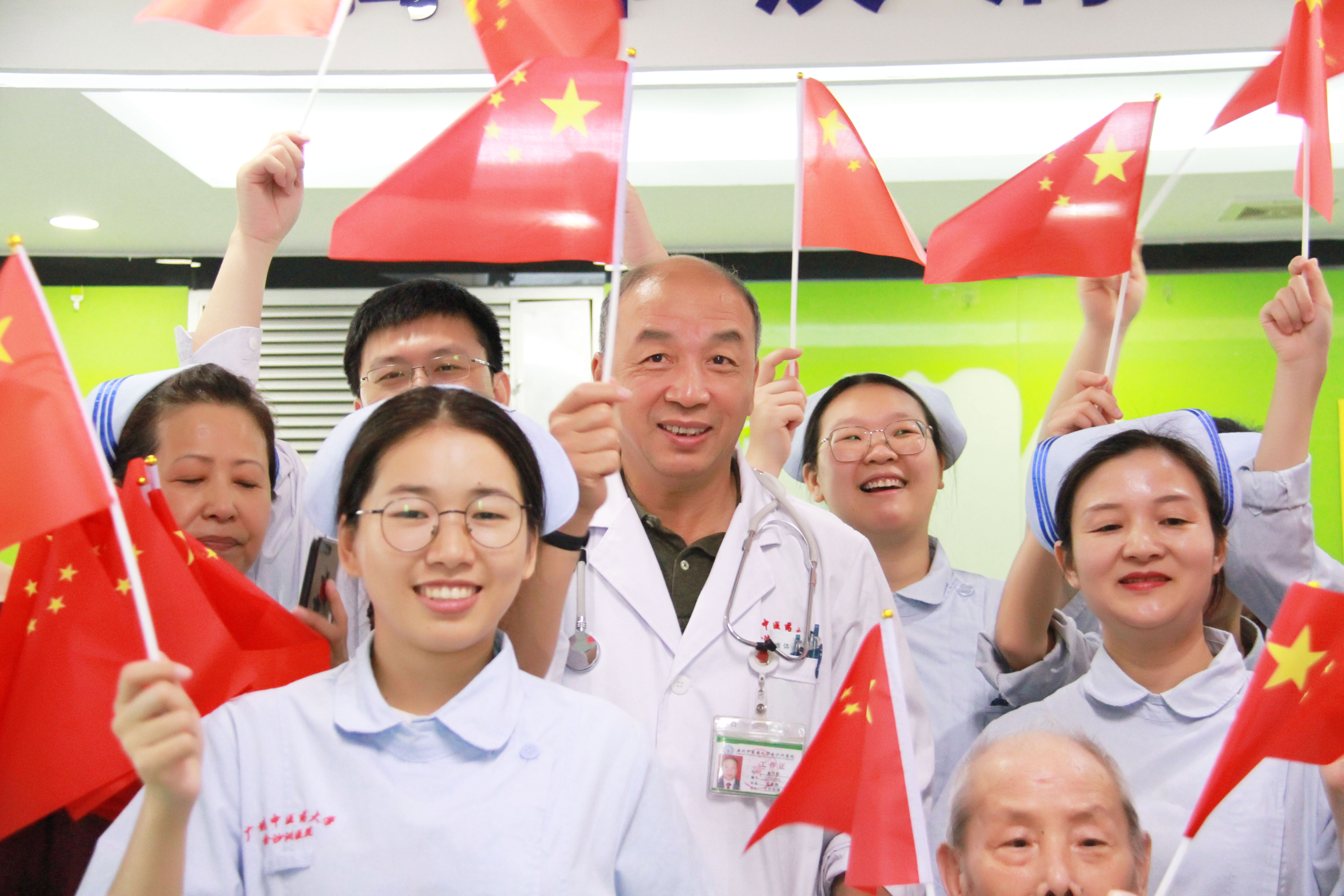 全体职工用歌声共同庆祝祖国70华诞,热烈的氛围感染了许多就诊患者和家属,也吸引了他们不约而同地深情同唱,和我们一起感受节日的氛围。