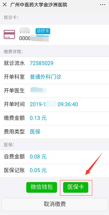 选择医保卡支付(如医保账户里没有钱可以选择微信钱包支付)