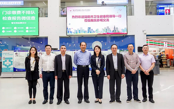 近日,简阳市副市长昌朝戎,简阳市卫生健康局党委书记、局长黄安文,简阳市红十字会专职副会长樊建昌,简阳市卫生健康局药具管理站站长陈晓宇,简阳市人民医院党委委员、副院长陈忠军,简阳市中医医院党委委员、副院长胡丕等一行莅临我院参观交流,我院刘文胜院长、宋骤执行院长等院领导热情接待了来宾。