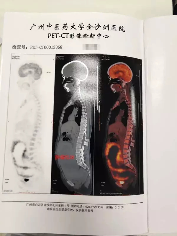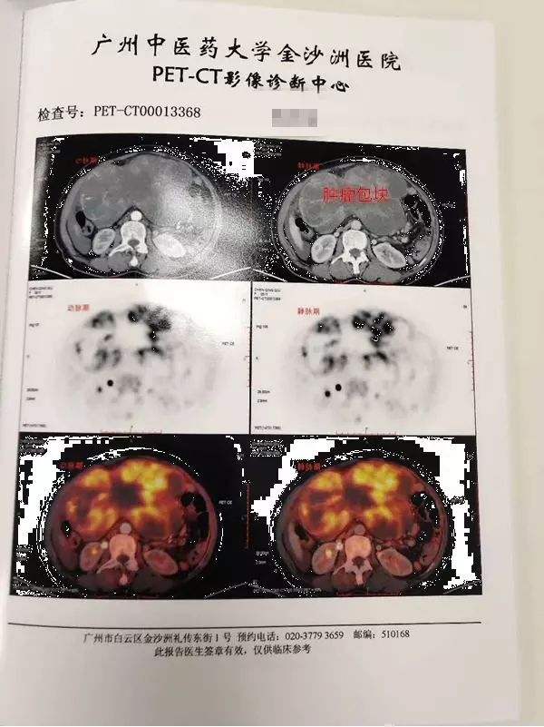 经PET-CT检查后发现,陈女士的腹部肿块占满大部分盆腹腔,并转移到膈下、大网膜、肠系膜、腹膜后及盆壁,右侧内乳区、右侧肺门及纵隔多发增大淋巴结,不排除转移(见图一、二)。其病情较重,如不尽快手术,将会有生命危险,于是宋主任立即安排陈女士住院。