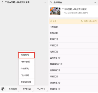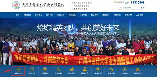 打开广州中医药大学金沙洲医院官网,点击“预约挂号”即可进入预约页面。