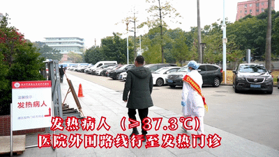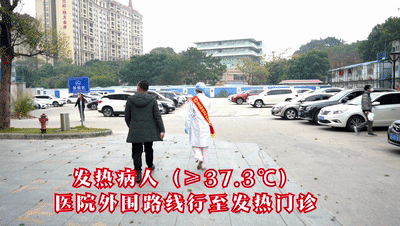 开车来院者也要在入口测量体温,发现不明原因发热、咳嗽等症状的病人,工作人员进行登记并协助其戴医用外科口罩,安排车辆停在指定区域后,由工作人员按照标识将患者引导至发热门诊。