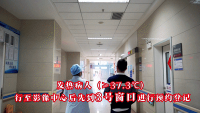 发热病人至发热门诊不能排除疑似病例的,需进行相关检查(如血常规及胸部CT检查):在发热门诊抽血区域完成抽血(查血常规),随后由专人从指定路线送至影像科发热病人专用检查室(①号CT或③号DR)拍片检查;
