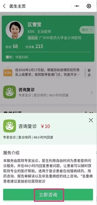 我院互联网医院,支持在线复诊续方,送药到家(对接医院西药房,当天顺丰快递配送)。可识别以下二维码或微信搜索“广州中医药大学金沙洲医院”小程序联系相关医生进行咨询。
