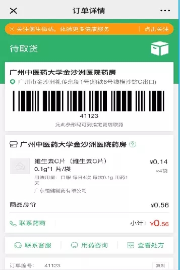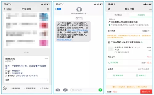 医生开方后,患者可通过微信通知或短信链接,查看购药订单
