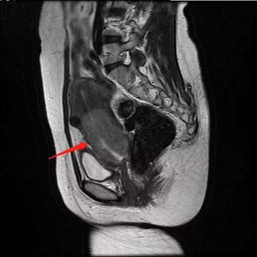 ▲通过盆腔MRI发现子宫颈-子宫体中下段占位,考虑诊断宫颈癌