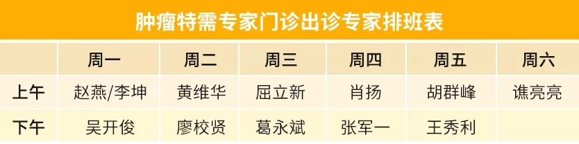 那么,肿瘤特需专家门诊具体是怎么样的呢?有哪些专家出诊?别急,下面都会一一告诉大家!