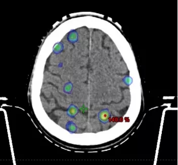 在传统放射治疗中,对于颅内多发肿瘤很多医院往往采取全脑照射的方式,把整个大脑作为靶区进行放射治疗,正常的脑组织承受的辐射剂量跟肿瘤是一样的,这就导致患者放疗后反应比较大,可能出现如恶心、呕吐以及偏瘫、认知功能障碍等。