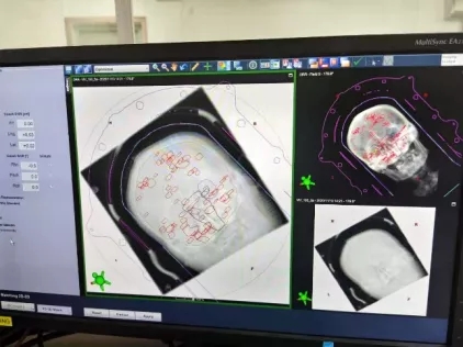 治疗前拍摄CT影像,与定位CT进行图像融合,确保治疗精确进行