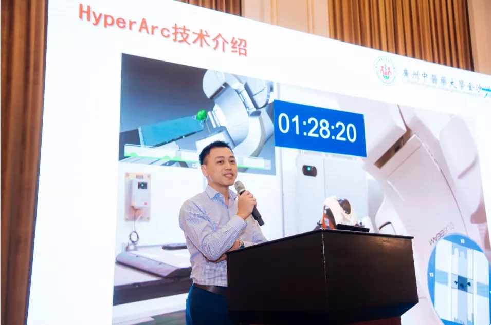 在魏夏平主任的报告中,也有HyperArc临床案例分享,清晰明了地展现了HyperArc技术优势:临床医生能够提供对肿瘤的大小、形状和位置更集中、更适形的剂量,从而对周围健康组织有更好的保护;通过全自动化一键式操作启动和监控治疗流程,将投照时间控制在10-15分钟左右,实现前所未有的简单高效治疗流程!HyperArc技术精准度和安全度的大幅提升,是全场的焦点。