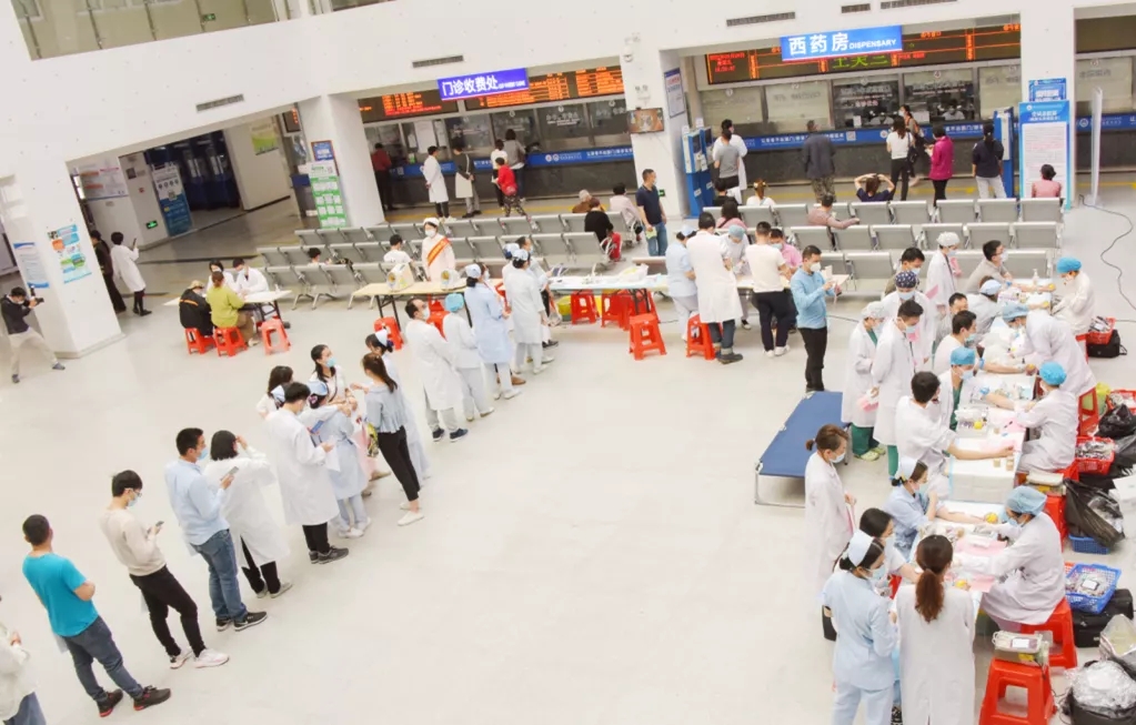 虽然按规定已经接种了新冠疫苗的职工不能参与本次无偿献血,但在院领导、党员干部的带头下,仍有超过百名医务工作者们撸起袖子伸出臂膀。捐献热血,医不容辞!