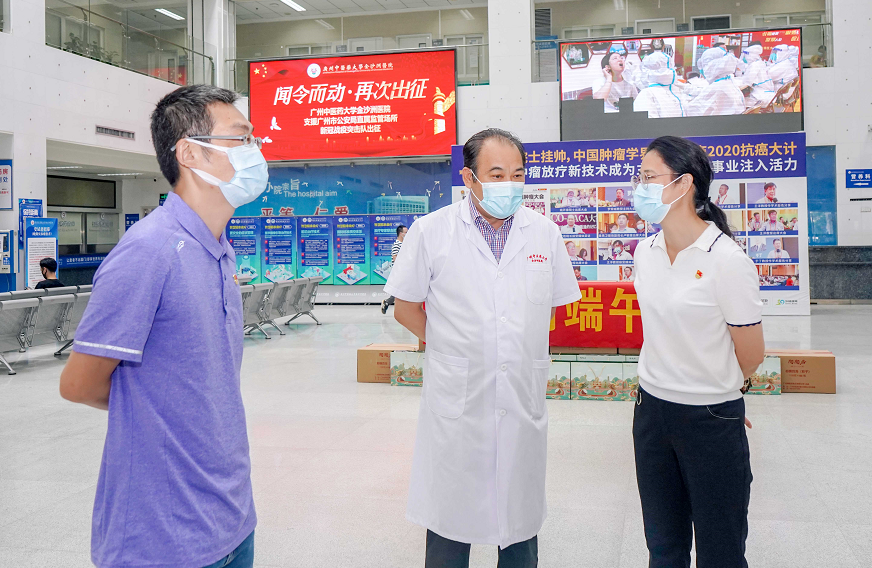悠悠粽叶香,浓浓关爱情!6月13日上午,在端午节来临之际,金沙街党工委书记凌慧健、街党工委副书记越云飞、二级调研员潘国锐、卫健办负责人李秋珍等领导到我院慰问坚守在防疫一线的医护人员,并送上节日祝福和端午粽子,感谢大家在节日期间坚守岗位、辛勤付出。我院刘文胜院长、医务部张胜明主任等领导出席接待,对街道领导的关怀表示诚挚感谢。