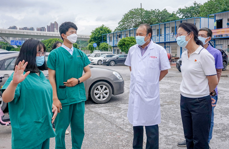 “奋战在抗疫一线的同志们辛苦了!”街党工委书记凌慧健在了解我院防疫工作情况后说,当前正值疫情防控的关键时期,感谢金沙洲医院的医务人员放弃假期、坚守岗位、勇担使命,始终奋战在疫情防控的最前线。并叮嘱战斗在一线的医务人员做好个人防护工作,齐心协力打赢这场防控阻击战。