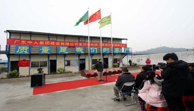 2012年3月11日上午,在广州中医药大学金沙洲医院工程项目部工地现场彩旗飘扬、人声鼎沸、鲜红的地毯,激昂的音乐,到处洋溢着喜庆的气氛。广东中人集团建设有限公司金沙洲医院工程项目部在这里举行隆重的揭牌仪式。出席揭牌仪式的领导有中人集团副总经理张周荣、中人建设公司副总经理兼总工程师吴建强,中医药大学资产部华总,广州中医药大学金沙洲医院刘文胜院长及相关业主方、监理方代表,中人建设建筑公司管理人员等约80人。仪式由中人建筑公司办公室主任凌献主持。