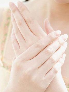 指甲基部的白色像半月形的部分称为指甲半月,也就是民间俗称的甲白。如果10个手指甲完全没有或仅仅有一点点甲白时,意味着身体疲劳不堪或正患有病痛。最理想的甲白应占指甲面积的1/5左右。指甲上有纵线,则是操劳过度及用脑过度的征兆。此外,久病阴精亏损和缺乏维生素A引起的夜盲症,也会在指甲上出现纵线。到了病情严重的时候,指甲或是变得高低不平,或者出现裂缝。指甲上出现横线,是心肌梗死将要发作的危险信号。指甲上出现横沟,多半是身体虚弱的表现,或者是患有结核类的慢性消耗性疾病。若长期缺乏蛋白质或铁元素造成的贫血患者,除了指甲颜色变得苍白外,有的还会出现匙状甲,即指甲中央凹陷,边缘翘起,指甲变得很薄,没有光泽。